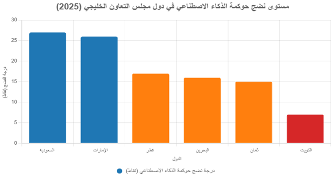 رسم بياني: مستوى نضج حوكمة الذكاء الاصطناعي في دول مجلس التعاون الخليجي