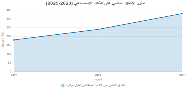 رسم بياني: الإنفاق العالمي على الذكاء الاصطناعي (2023-2025)