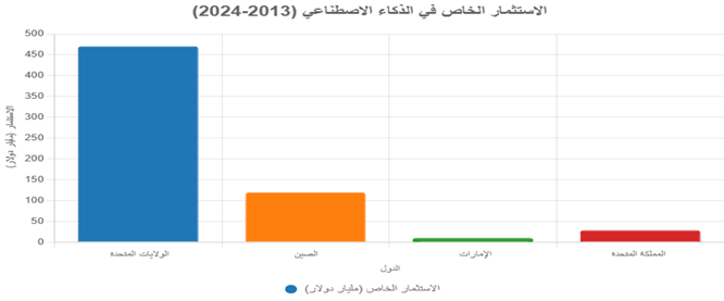 رسم بياني: مقارنة استثمارات الذكاء الاصطناعي في دول مختارة (2013-2024)
