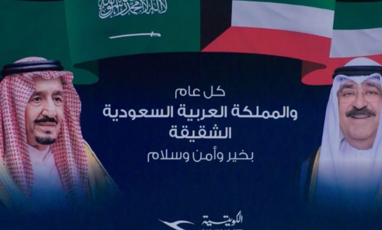 وتحتفل الخطوط الجوية الكويتية اليوم بمناسبة عزيزة على دولة الكويت وعلى قلوب جميع الكويتيين، ويسعده الناقل الوطني لدولة الكويت دائماً أن يشارك الشعب السعودي الكريم احتفالاته ومناسباته، فيما يجمع الشعبين الكويتي والسعودي الشقيقين علاقات وروابط وطيدة وتاريخية تمتد على مر العقود في كل المجالات، سواء الاجتماعية أو السياسية أو الاقتصادية وغيرها، مما يعزز أواصر العلاقات الاخوية بين البلدين قيادة وشعباً، ويجسد روح الترابط والاخوة بينهما.