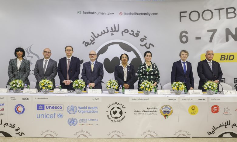 توظيفاً للشعبية العالمية لكرة القدم في خدمة الدبلوماسية الإنسانية وتقديم الدعم الملموس للأطفال المتأثرين بالأزمات، عقدت اليوم مبادرة «كرة القدم للإنسانية» مؤتمراً صحفياً في مركز الحمراء للتسوق للإعلان رسمياً عن انطلاق برنامج النسخة الأولى من دولة الكويت تحت رعاية عبدالله علي اليحيا، وزير الخارجية، وبالشراكة مع الأمم المتحدة ممثلةً باليونسكو ومنظمة الصحة العالمية واليونيسيف ومكتب المنسق المقيم للأمم المتحدة في الكويت، ومشاركة سفارات تسع دول، والقطاع الخاص الكويتي، حيث سيتم توجيه ريع بطولة كرة قدم مخصصة للصغار، ومزاد خيري لمقتنيات كروية حصرية، وأنشطة مجتمعية متنوعة، لتقديم الدعم الحيوي للأطفال الفلسطينيين، على أن يدار الريع حصراً عن طريق جمعية الهلال الأحمر الكويتي.