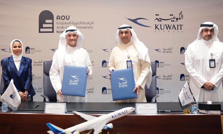 وقعت شركة الخطوط الجوية الكويتية، والجامعة العربية المفتوحة في الكويت، بروتوكول تعاون مشترك لتعزيز العلاقات الثنائية والاستراتيجية بين الطرفان، وذلك بحضور رئيس مجلس إدارة الخطوط الجوية الكويتية الكابتن/ عبد المحسن سالم الفقعان، ومدير الجامعة العربية المفتوحة في الكويت الدكتور/ صلاح صالح الحمادي، وعدد من المسؤولين في الطرفان.