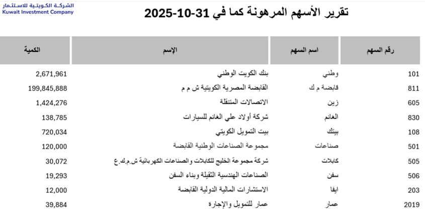 الرئيسية/الكويت/تقرير الكويتية للاستثمار إلى البورصة عن الأسهم المرهونة الكويت تقرير الكويتية للاستثمار إلى البورصة عن الأسهم المرهونة Editorمنذ 5 أيام 55 أقل من دقيقة شاركها فيسبوك X واتساب مشاركة عبر البريد الكويتية للاستثمار Editorمنذ 5 أيام 55 أقل من دقيقة شاركها فيسبوك X واتساب مشاركة عبر البريد شاركها فيسبوك X واتساب مشاركة عبر البريد