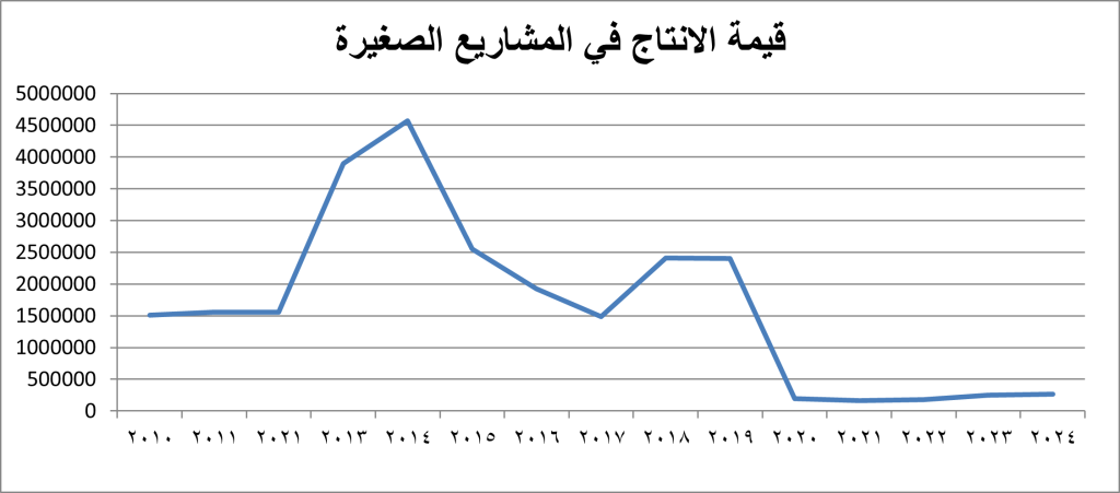 الشكل رقم (1) مسار تطور الانتاج للمشاريع الصغيرة للمدة (2024-2010)