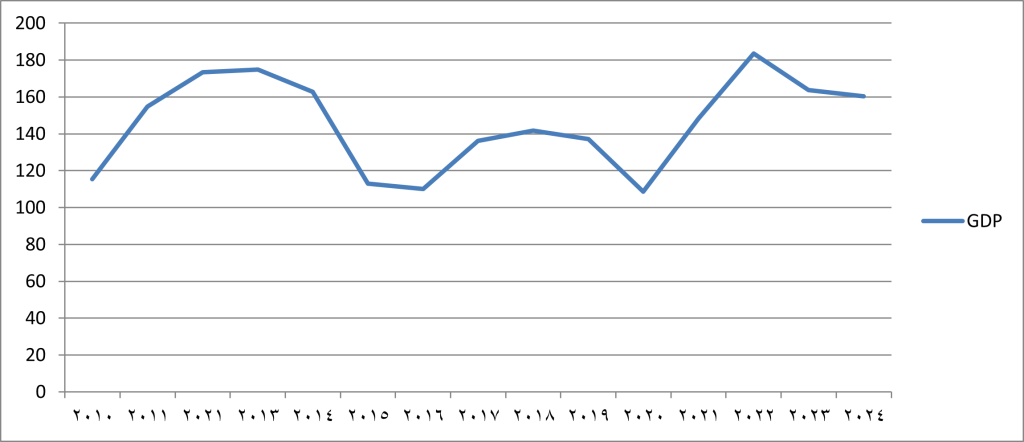الشكل رقم (2) مسار تطور الناتج المحلي الإجمالي في الكويت للمدة (2024-2010)