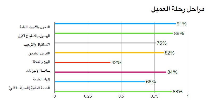 • الأداء السلوكي يحتاج إلى تحسين الترحيب التفاعلي خلال مراحل الخدمة لرفع تجربة العميل العاطفية
