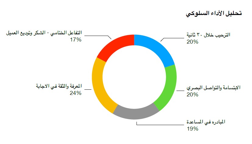 الدراسة ركزت على سلسلة من النقاط الجوهرية وفق معطيات واقعية ومؤشرات ملموسة، تبدأ من مواكبة رحلة العميل مروراً بالأداء العام حسب الأبعاد السلوكية، والتي تشمل سلوك الموظفين وجودة العمليات والوقت والجهد، ثم التحليل السلوكي العميق مثل التواصل البصري والمعرفة والثقة في الإجابة على الاستفسارات، ثم التفاعل الختامي في إغلاق المهمة.