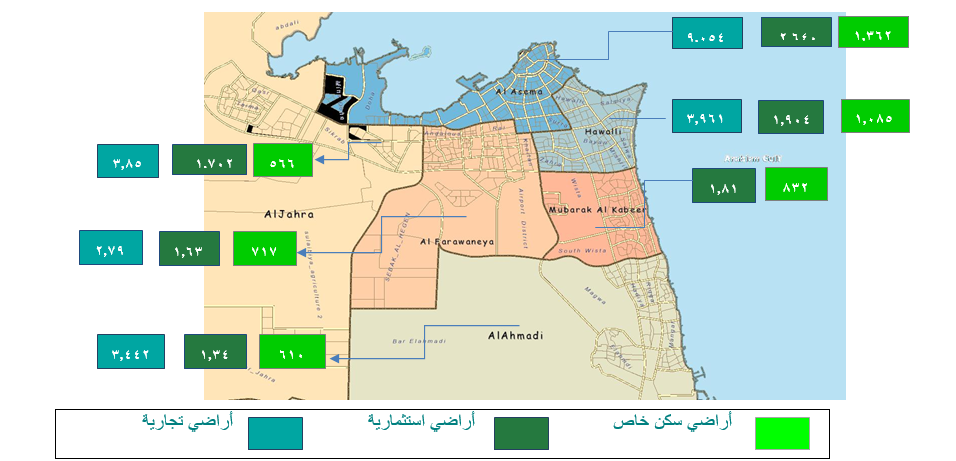 متوسط سعر المتر المربع في القطاعات العقارية المختلفة في محافظات الكويت بنهاية الربع الثالث 2025