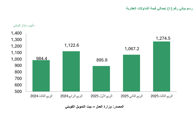 1.3 مليار دينار قيمة التداولات العقارية خلال الربع الثالث 2025