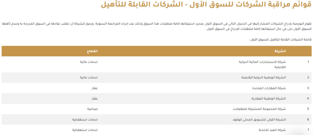 البورصة تحدد سنوياً قوائم من الشركات المدرجة تخضع للمراقبة لتتأهل للسوق الأول … يقابلها شركات بموافقات مباشرة للإدراج في السوق الأول