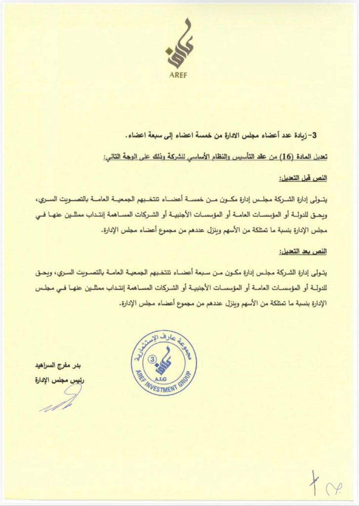 زيادة عدد أعضاء مجلس الإدارة من 5 إلى 7 أعضاء