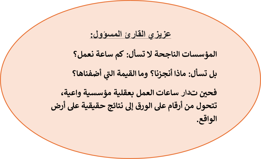 * ربط الأداء بالنتائج لا بعدد الساعات