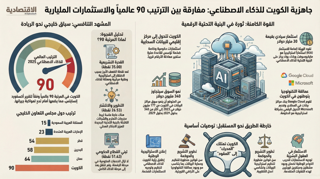 الكويت في المرتبة 90 عالمياً في جاهزية الذكاء الاصطناعي.. واستثمارات مليارية في “مراكز البيانات” تمهد لقفزة كبرى