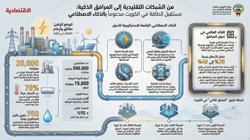 ملاحظة للقرّاء: في إطار التغطية المعمّقة لهذا الملف، ستُجري «الاقتصادية» مقابلة تقنية حصرية مع فريق شركة C3.ai في منطقة الخليج والكويت، لتسليط الضوء على القيمة المضافة التي يمكن أن تُقدّمها حلول الذكاء الاصطناعي المتخصصة لقطاع المرافق في الكويت والمنطقة. ترقبوا هذه المقابلة في الأعداد القادمة.