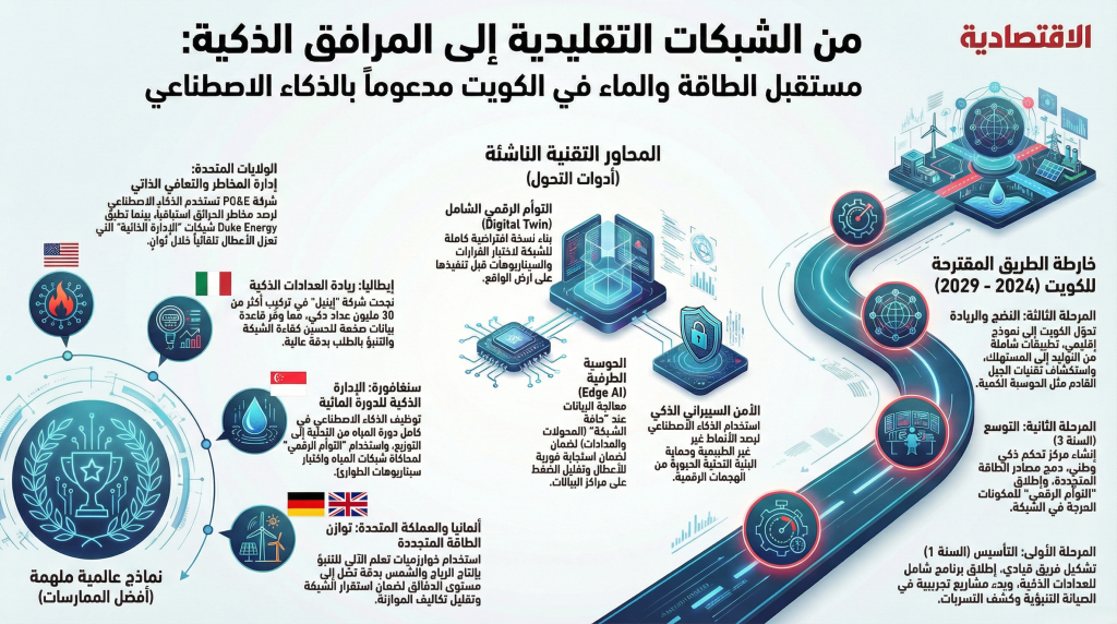 بناءً على مجمل التجارب الدولية والإقليمية المستعرضة عبر أجزاء هذه السلسلة الثلاثة، يمكن تقديم خارطة طريق عملية لتحول قطاع الكهرباء والماء في الكويت نحو «المرفق الذكي».