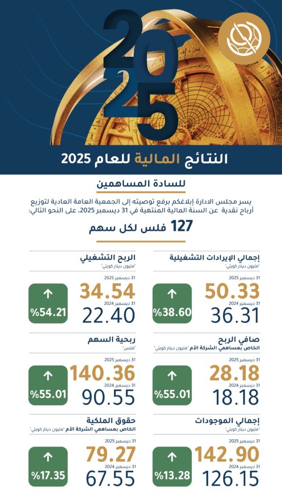 توصية مجلس الإدارة بتوزيع 127 فلس للسهم كأرباح نقدية عن العام 2025