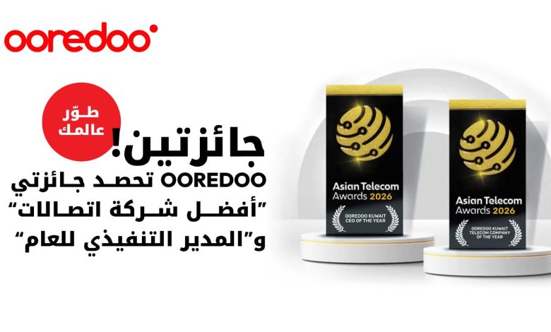 في محطة إنجاز جديدة من مسيرة التميز والقيادة، أعلنت Ooredoo الكويت بفخر عن فوزها بجائزتين مرموقتين خلال حفل توزيع جوائز “الاتصالات الآسيوية -Asian Telecom” لعام 2026، حيث توّجت الشركة بجائزة «أفضل شركة اتصالات للعام» للمرة الثالثة على التوالي، فيما نال عبد العزيز البابطين لقب «الرئيس التنفيذي للعام 2026»، في تأكيد واضح على قوة استراتيجيتها المؤسسية، وفاعلية قيادتها التنفيذية، واستمرار أدائها الاستثنائي ضمن قطاع الاتصالات على مستوى العالم.