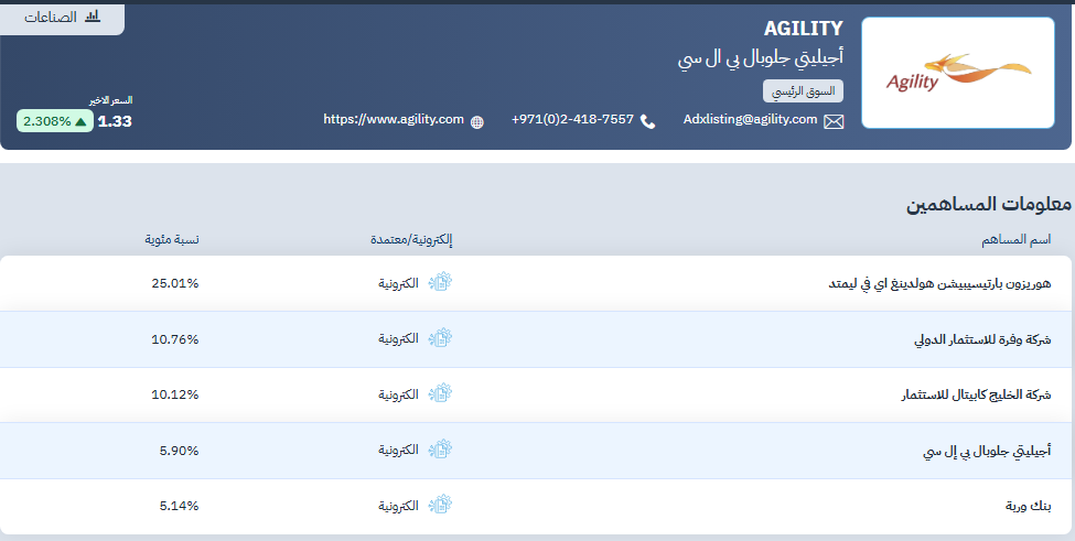 الملاك الرئيسيون في أجيليتي جلوبال