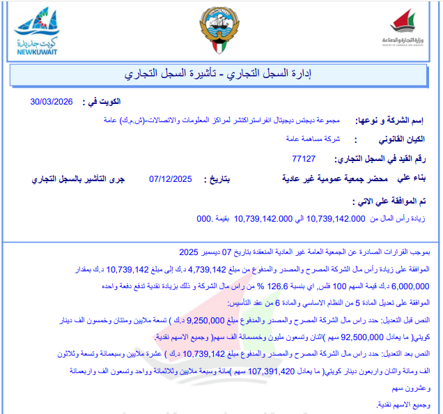 الجمعية غير العادية في 7 ديسمبر 2025 والتأشير في السجل التجاري 30 مارس 2026