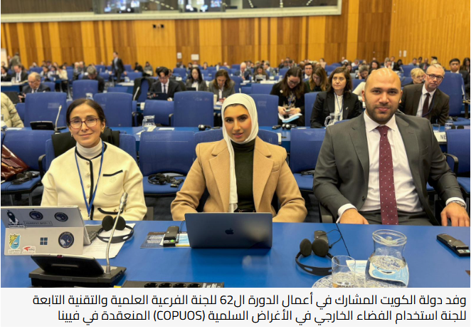 وقد دولة الكويت الدكتورة هالة الجسار ممثلة عن مركز الكويت الوطني لأبحاث الفضاء (Kuwait-NSRC) وهي المشاركة الأولى للمركز في أعمال اللجنة منذ الإعلان عن تأسيسه في سبتمبر 2024 بتوجيه من حضرة صاحب السمو أمير البلاد الشيخ مشعل الأحمد الجابر الصباح.
