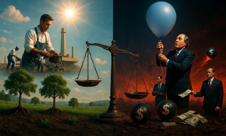 لذلك هناك فارق بين من يعمل بجد واجتهاد وينتج، ومن يتصنع أنه منتج، بين من يحقق أرباح من صميم أعمال وأنشطة تشغيلية ومن بزنس حقيقي، وبين من يصطنع الأرباح صناعة من مصادر بعيدة عن صميم العمل الأساسي والتشغيلي وبعيداً عن ميدان المنافسة عن طريق بيع الأصول والممتلكات، حتى وصل الأمر للتخلي عن أصول تشغيلية، لينطبق عليه مثل “من أخذ القرد على ماله، غداً سيتبخر المال ويظل القرد على حاله!!